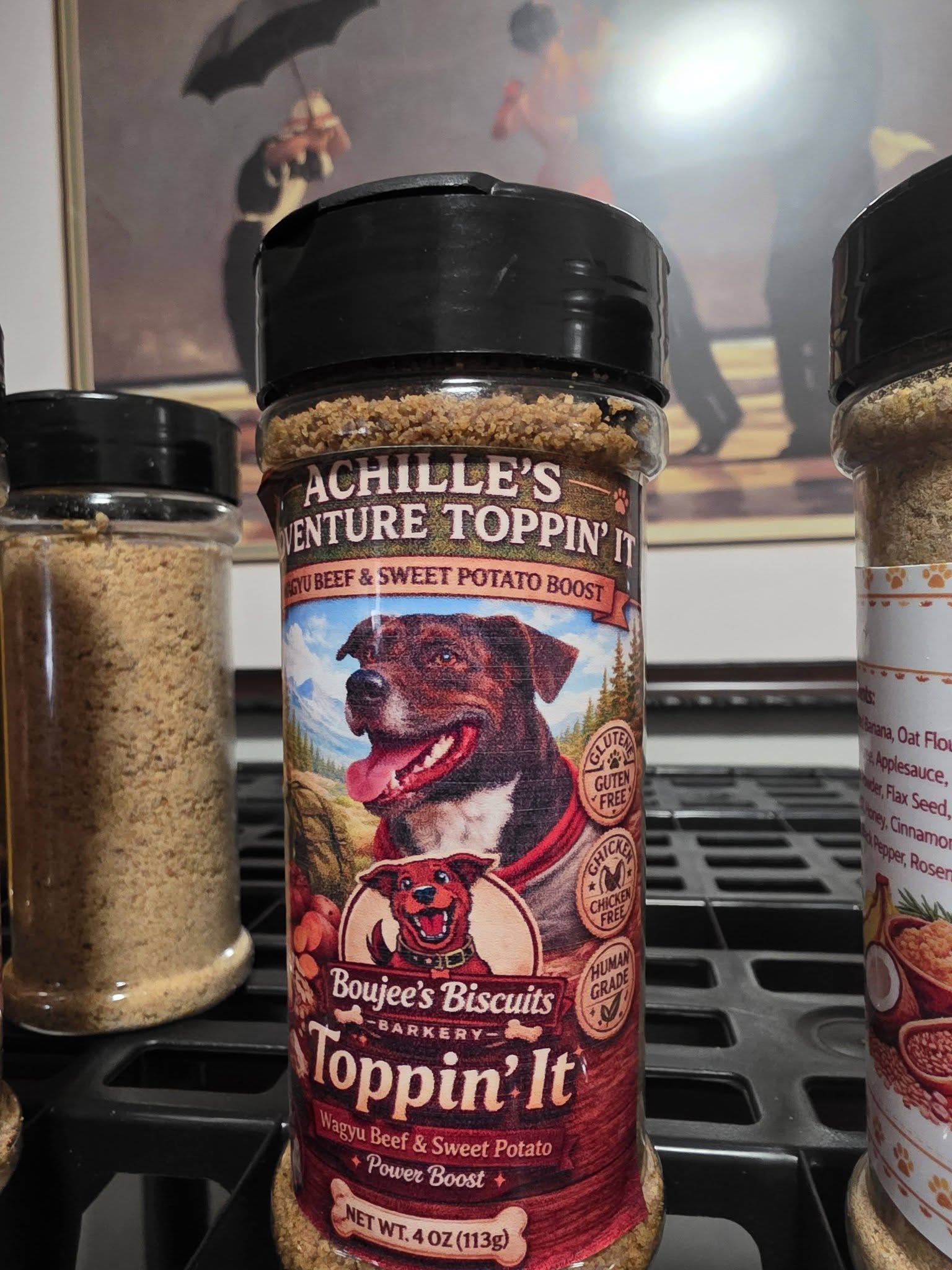 | Flavor | Achilles Adventure's }Boujee's Bountiful, Bacon & Cheddar, 'Pup'Kin Patch, Brutus's Banana Bread |