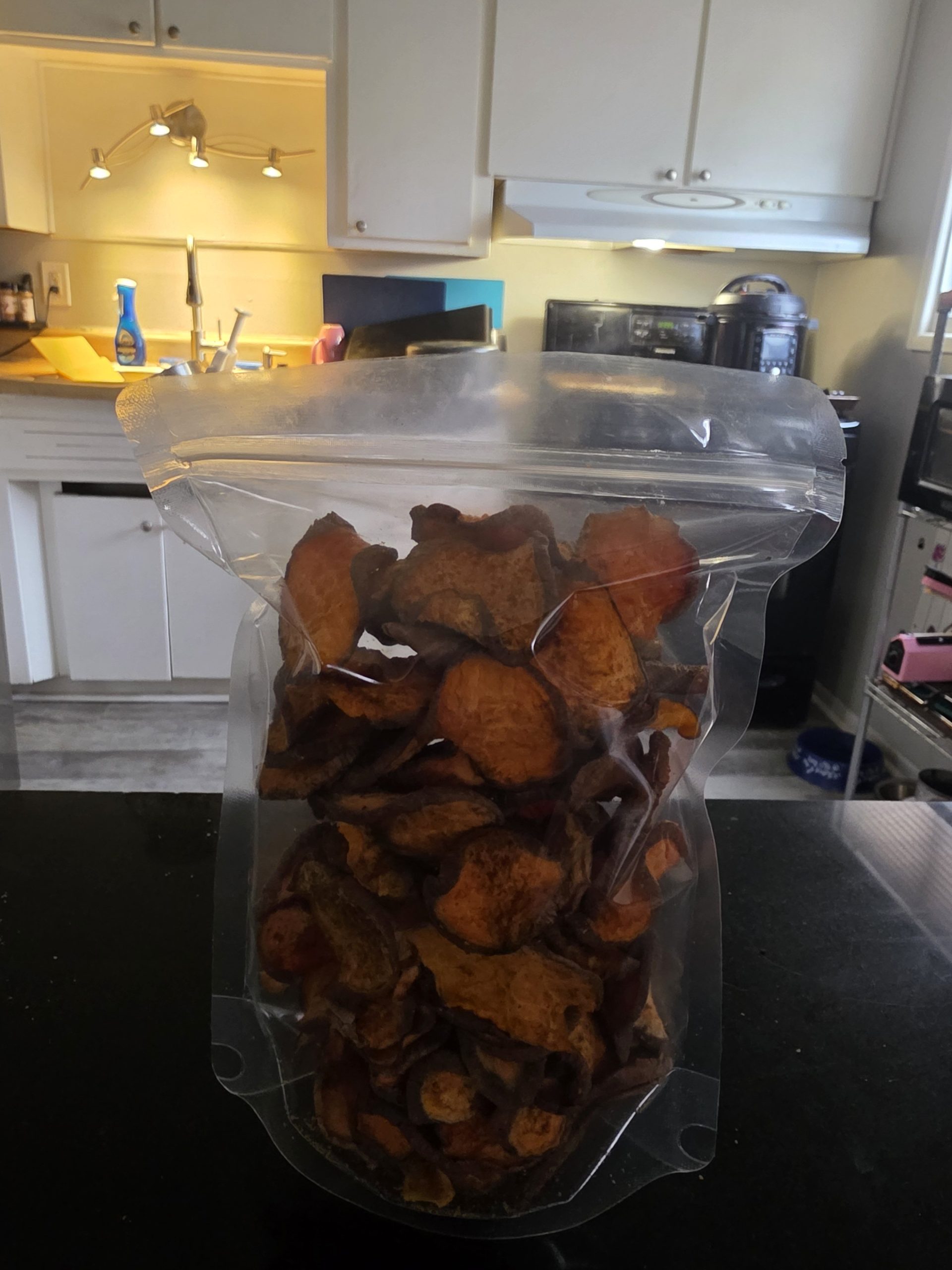 These sweet potato chips are savory, and flavor packed with fresh sweet potato. Carefully washed and sliced, they ae brushed with organic liquid coconut oil and dusted with Argentine grass-fed beef liver and organic nutritional yeast. They are slow baked and then dehydrated to a crunch sure to make your pups come back time and time again !