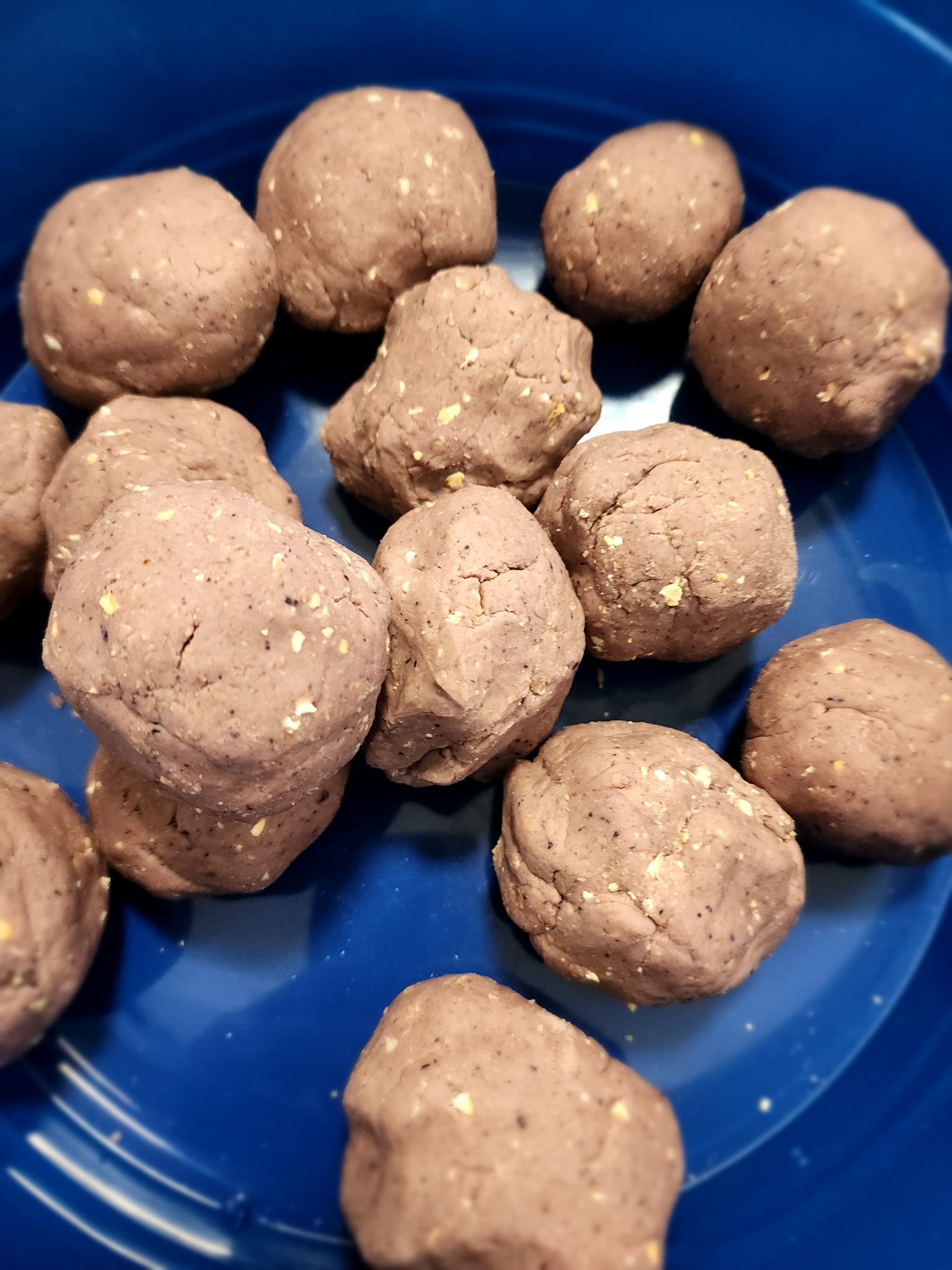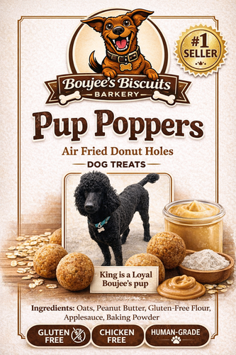 Pup Poppers have been one of the most popular sellers here at Boujees. The are simple,Oats Gluten-free flour – made with white rice flour, brown rice flour, tapioca flour , potato starch and xantham gum. All-natural peanut butter Applesauce and Baking powder. These are shaped into balls and airfried to maintain flavor and has a texture your pup will devour.